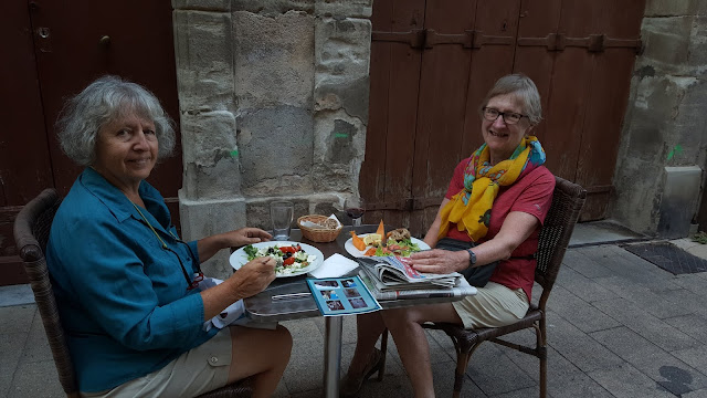 It was fun being back there again, however, and this time I had the luxury of time to explore. I took in the Cathédrale St. Pierre which I hadn't visited earlier, the Parc Royale du Peyrou; but Henri IV's Jardin des Plantes was closed Mondays. Par for the course. Around the nearby School of Medicine, students were returning to school and there were ritual antics associated with their return. Different rival groups in ridiculous costumes carried on a battle of sorts in a festive atmosphere, each group crying out lighthearted threats to the others. I strolled around, had a lovely salad at an Italian restaurant, and headed to the train station where I took advantage of the free wifi.